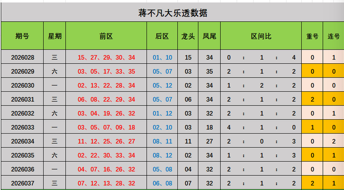 蒋不凡大乐透本期推荐: